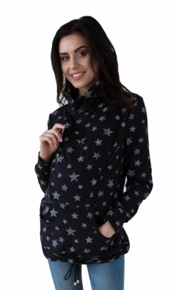 Be MaaMaa Těhotenská a kojící mikina s roláčkem - černá, potisk hvězdičky, vel. L