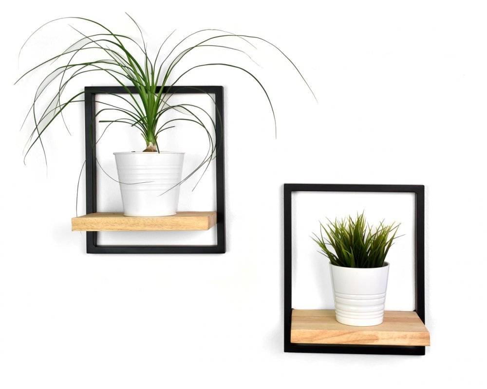 Sada dřevěných nástěných polic s kovovým rámem Everly 2 ks - suar - lak