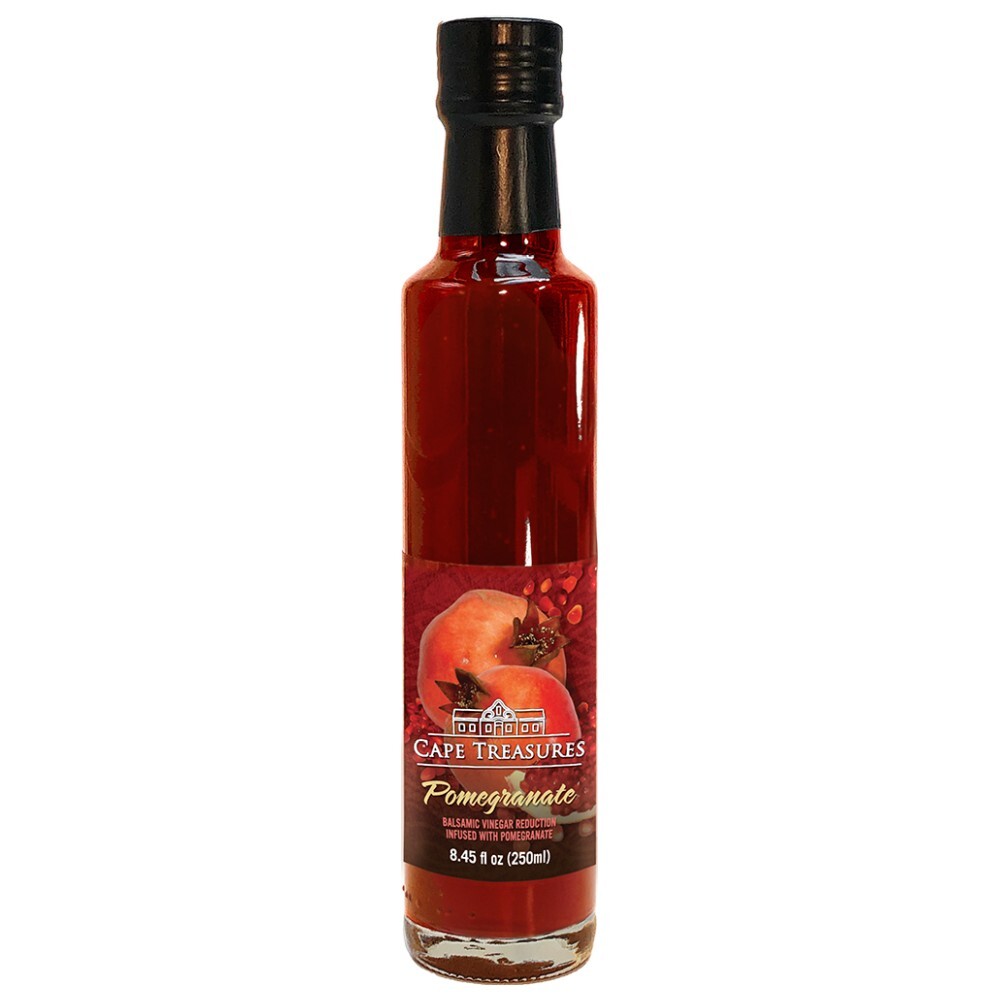 Tento balzamikový ocet s granátovým jablkem vyrábí lidé z Kapského města jako specialitu. S velkou dovedností, která pochází z mnoha let kuchařských zkušeností, pracují s jedinečnými jihoafrickými chutěmi a vytváří produkty, které zachycují vitální energii jako drahocenný poklad. Ovocnou dužinu nejdříve kombinují s octem a glukózou a po té redukují na koncentrát, jehož chuť a vůně se dlouze drží v ústech. Jemný balzamikový ocet s ovocnými vůněmi je chuťová alchymie, parfém k jídlu.