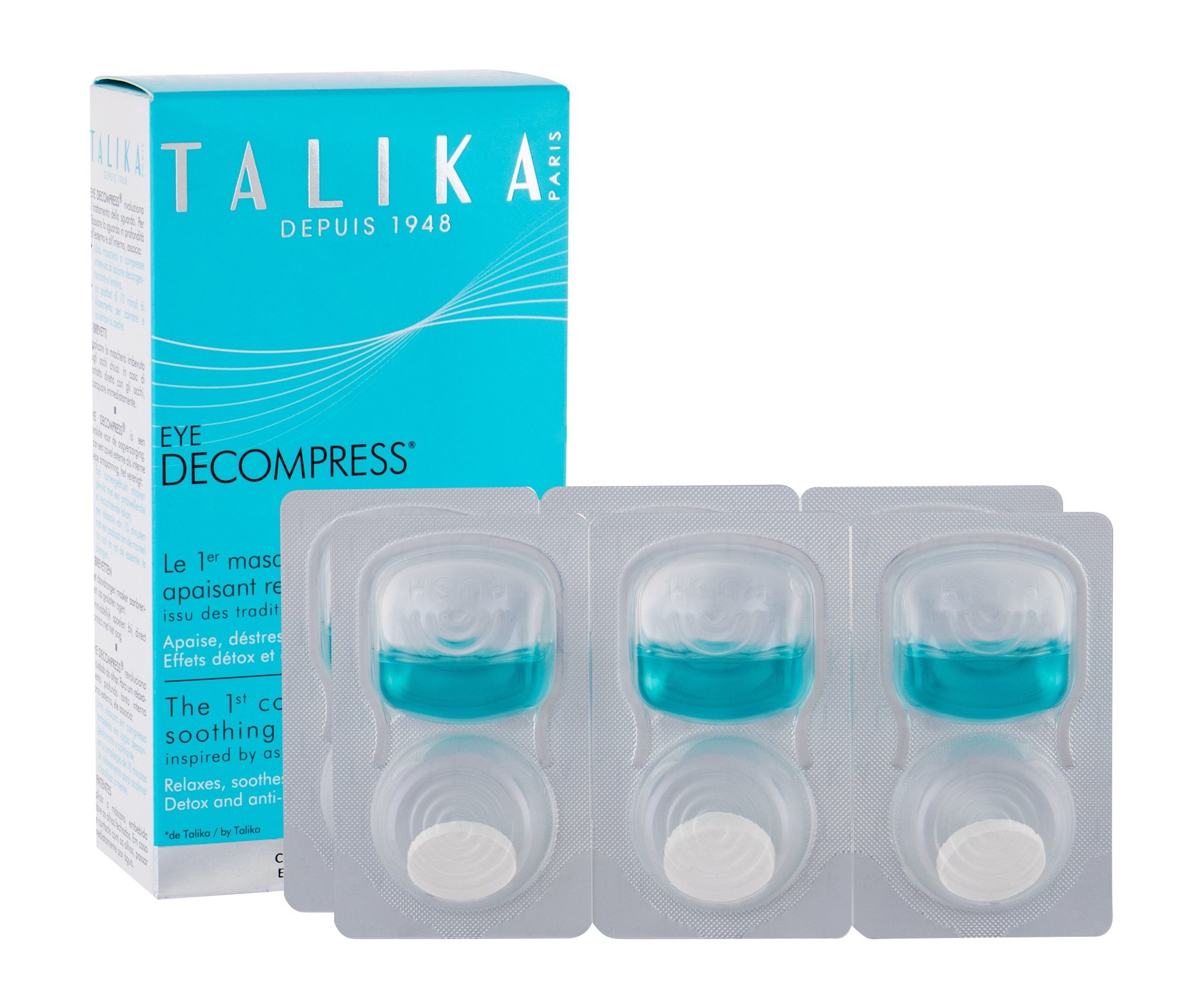 Oční maska Talika Eye Decompress uvolňuje napětí, zklidňuje a redukuje tmavé kruhy a otoky. Jaké další benefity nabízí oční maska Talika? vyhlazuje, inspirovaná asijskými tradicemi. Jakým způsobem se maska na oči používá?Oddělte bílou kapsli a vložte ji do modré. Nechte tekutinu absorbovat....
