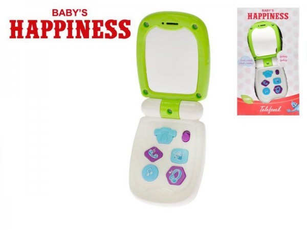 Telefon Mobil plast 17cm se zrcátkem na baterie se světlem a zvukem Baby´s Happiness 12m+ v krabičce
