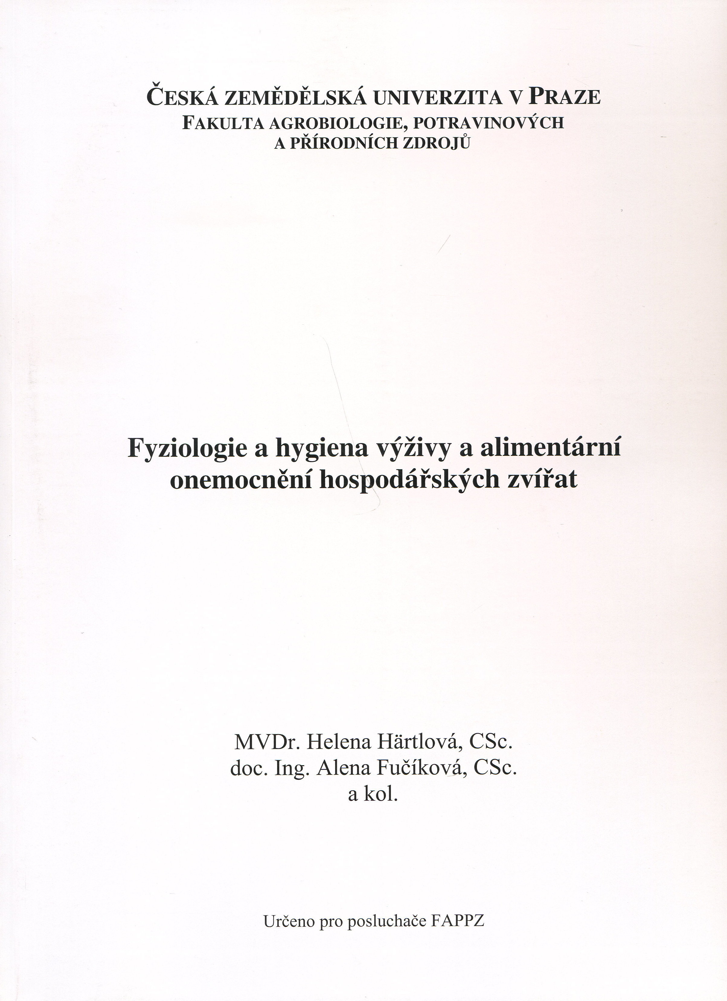 Fyziologie a hygiena výživy a alimentární onemocnění hospodářských zvířat