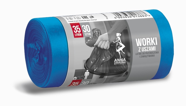 Worki na śmieci 35L z uszami niebieskie rolka 30 szt., Anna Zaradna