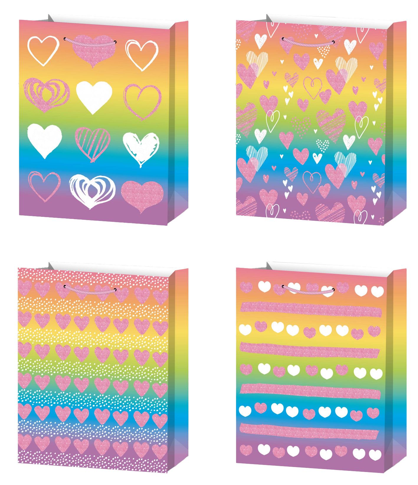 Dárková taška L - Duhová se srdíčky