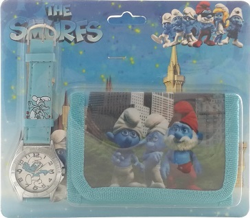 Zestaw zegarek + portfel i wizerunkiem bohaterów z popularbej bajki Smerfy číst celé