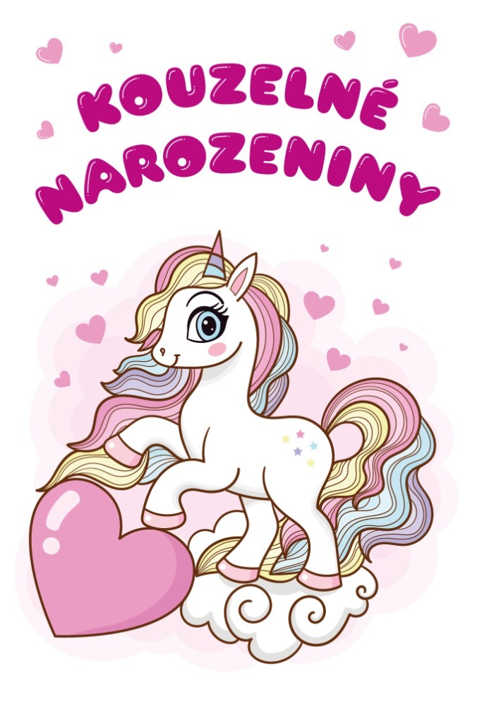 Kouzelné přání k narozeninám pro malé slečny s textem na titulce Kouzelné narozeniny. Vnitřní strana je ozdobena srdíčky s textem: Hodně štěstí, všechno nej, celý den se usmívej. Není baleno v igelitu, současí je bílá obálka, rozměr 17x11,5cm. číst celé