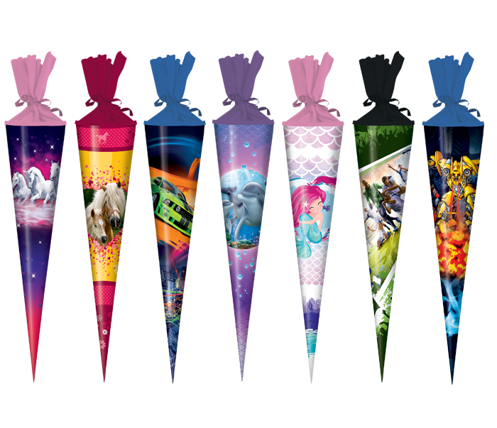 Školní papírový kornout na sladkosti s barevným potiskem dětských motivů a tylovým lemem. Do kornoutu se vejde spousta cukrovinek a sladkostí. Atraktivní doplněk pro prvňáčky v jejich první školní den. Délka: 70cmPrůměr: 16cmmix motivů číst celé