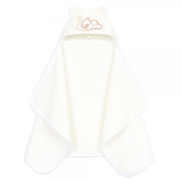 Maxi osuška, pončo s kapucí Medvídek 70x120cm - smetanová