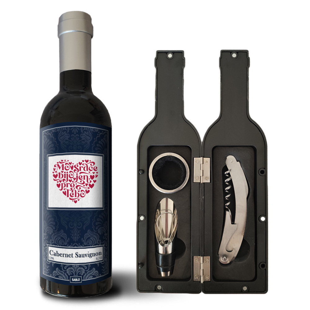 Sada na víno Mé srdce bije jen pro Tebe: 1 ks