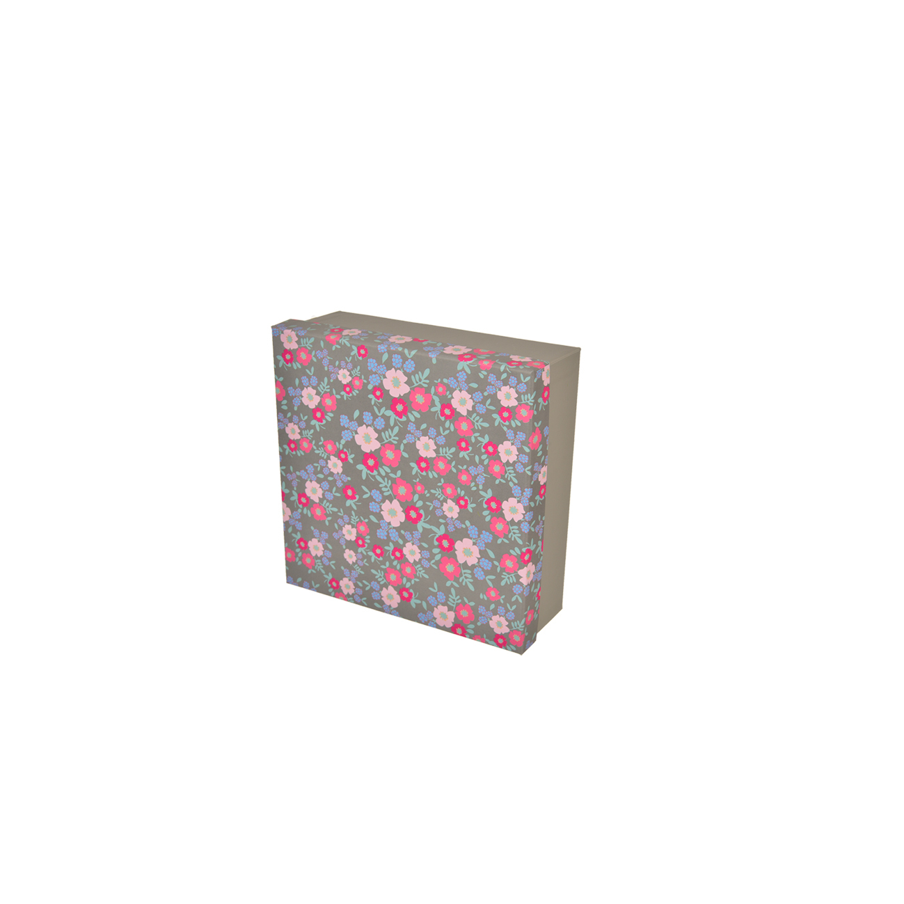 Krabice dárková papír kytička šedá 12x12x5 cm