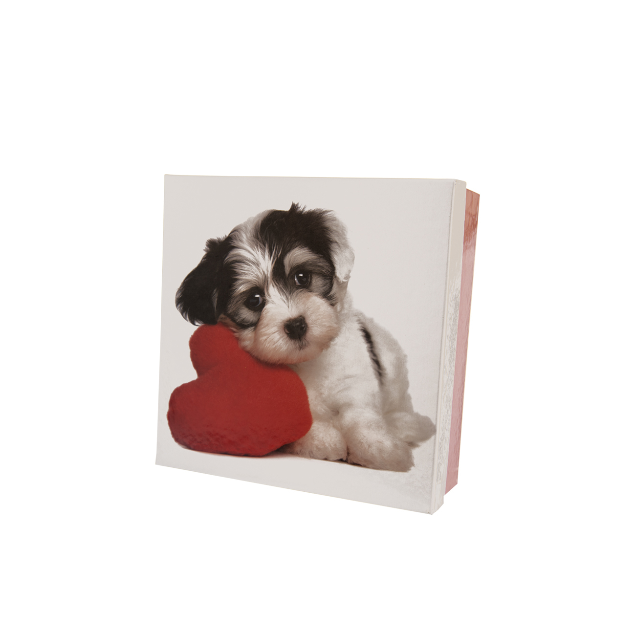 Krabice dárková papír DOG bílá/červená 16x16x6 cm