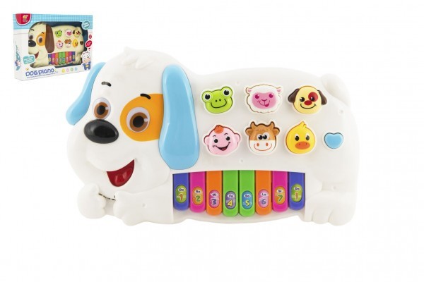 Piánko pejsek se zvířátky plast 28cm na baterie se zvukem se světlem 2 barvy v krabici 32x22x6cm