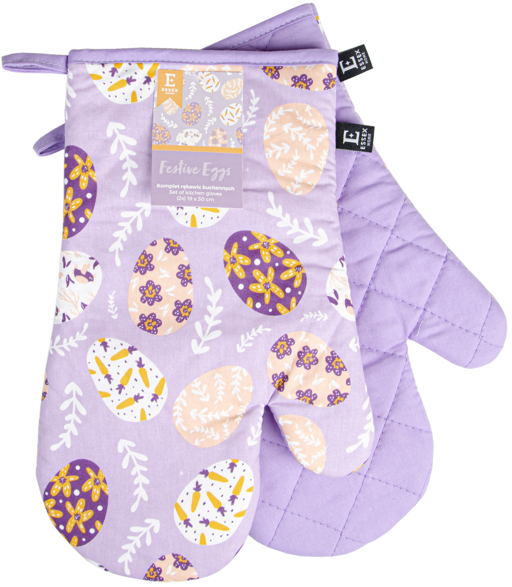 Kuchyňské bavlněné rukavice - chňapky FESTIVE EGGS fialová 100% bavlna 19x30 cm Essex