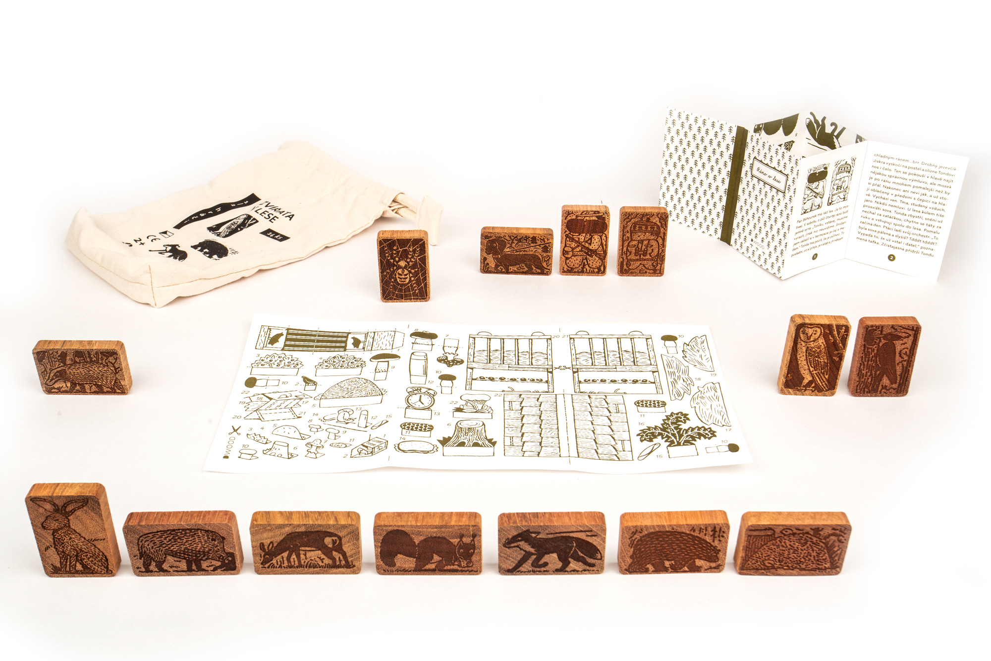 DWOOD Zvířata v lese 14 dílů - doplněk k dřevěné stavebnici s příběhem - v pytlíku