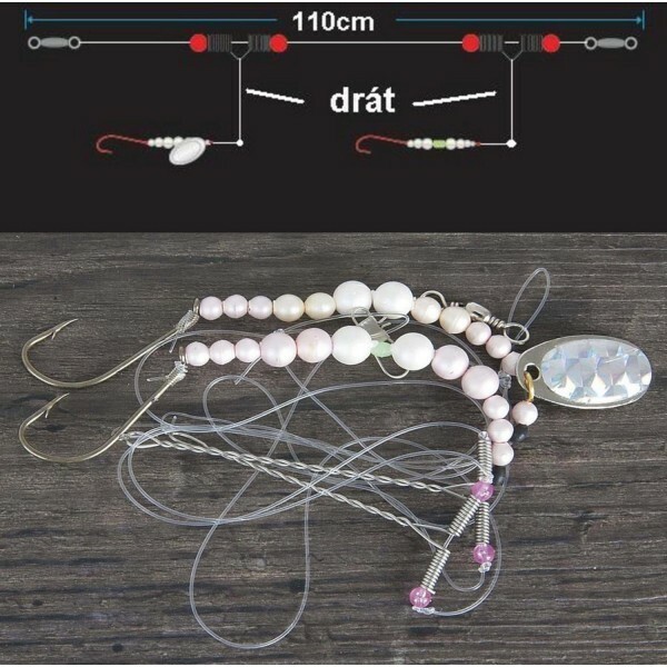 Tento systém je určený pro daleké hody a je vybaven držáky háčků a nárazovým štítem. Háčky tak zůstávají u hl. návazcového vlasce a nehrozí tak zamotání. Systém je vybaven několika bílými korálky a třpytkou. Je neodolatelný pro všechny druhy platýsů.110cm1/00,50mm53010020 číst celé