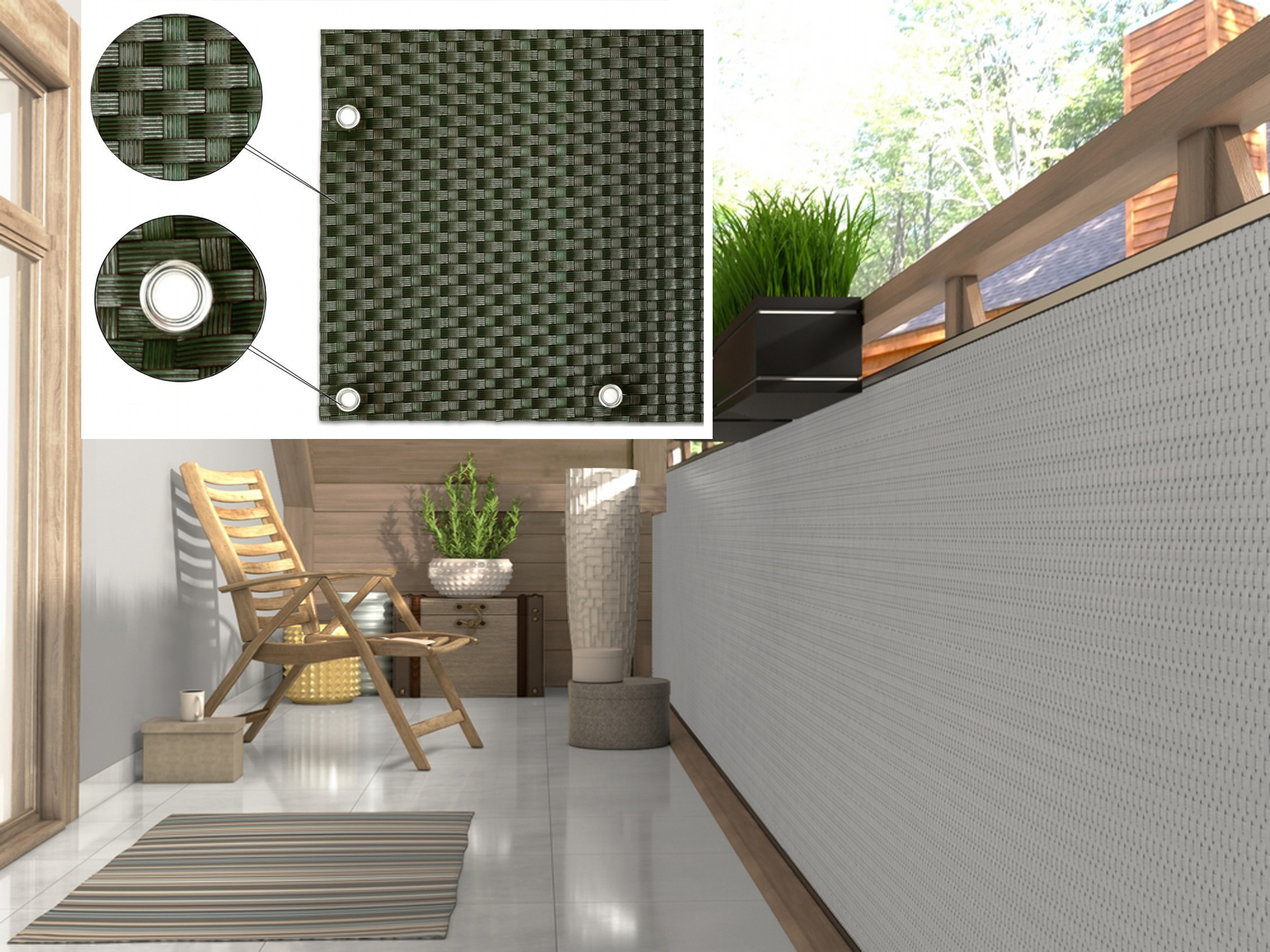 Balkonová ratanová zástěna s očky MALMO, zelená, výška 100 cm šířka 500 cm MyBestHome