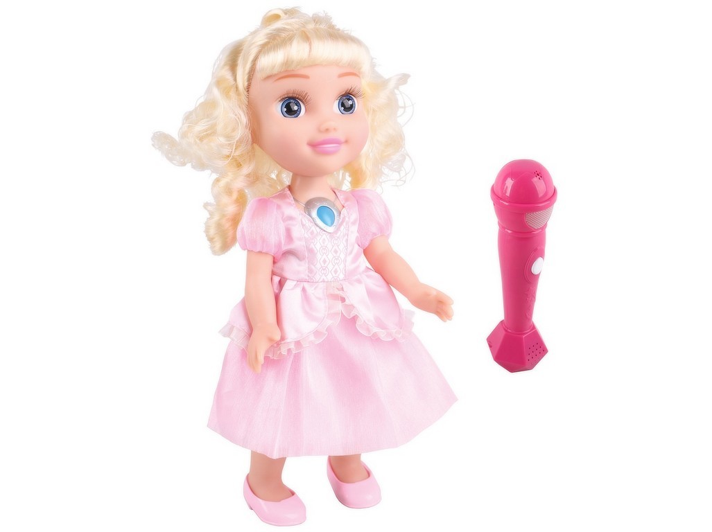 Panenka Růženka s karaoke mikrofonem. Panenka zpívá dvě známé české písničky z pohádek: O šípkových růžích (Jak se budí princezny) a Kdyby se v komnatách (Princové jsou na draka).Přiložením mikrofonu k ústům panenky panenka zpívá. Pokud se mikrofon oddělá, hraje jen hudba písničky a mikrofon... číst celé