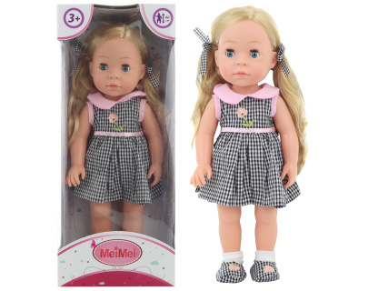 Panenka s dlouhými vlásky oblečená do kostkovaných šatů a botiček. Oblečení lze sundat, je na suchý zip. Panenka má tvrdé plastové tělíčko a mrkací oči. Rozměry panenky cca 40 x 16 x 7 cm. Rozměry balení cca 18 x 42 x 11 cm. Věk 3+ číst celé
