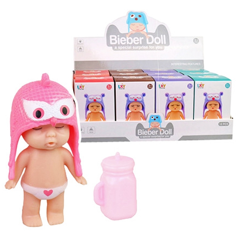 Panenka Bieber s lahvičkou, v balení v krabičce je panenka 8 cm velká s čepicí a lahví na mléko. V nabídce se ve 4 provedeních, cena je za kus. Baleno v boxu po 12 ks. Vhodné pro děti 3+. číst celé