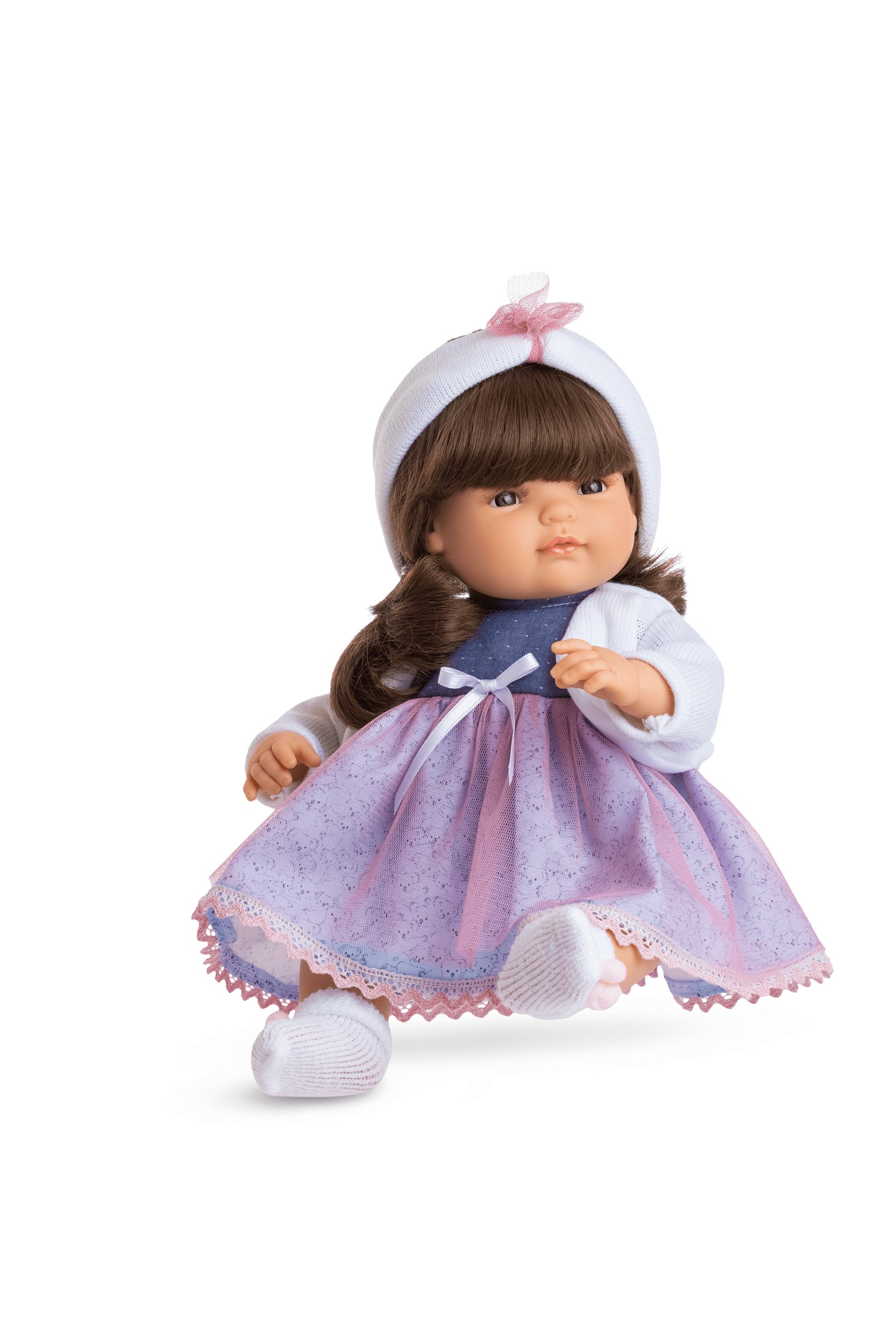 Interaktivní panenka Berjuan Claudia má hnědé vlásky a měkké tělíčko. Po zmáčknutí bříška panenka pláče, směje se a volá tatínka a maminku. Panenku dodáváme včetně stylového oblečku. číst celé