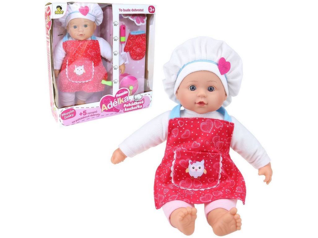 Panenka Adélka pohádková kuchařka. Mluví česky. „Pojďme uvařit něco dobrého.“ „Mám chuť na perníčky jako z perníkové chaloupky.“ „Uvaříme krupicovou kaši? Hrnečku vař!“„To bude dobrota.“ „Pozor, kaše už přetéká. Hrnečku dost!“ „Chystáš se na cestu? Napeč si buchty do uzlíčku!“ „Dala bych si...