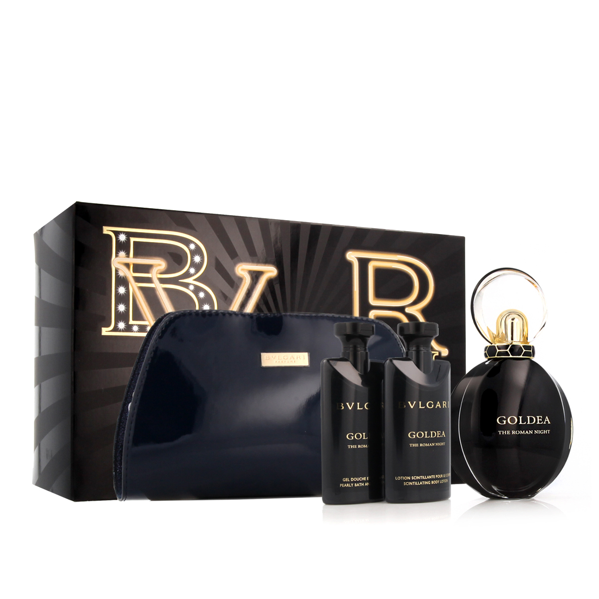 Bvlgari Goldea The Roman Night EDP 75 ml + SG 75 ml + BL 75 ml + kosmetická taška W