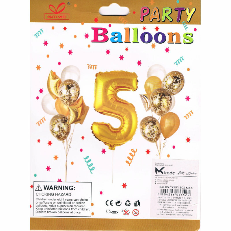 Zestaw balonów, cyfra 5, wys. 30-60cm, 16 szt. BSC-538-5