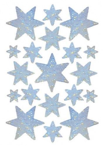 Naklejki Gwiazdki holograficzne srebrneRozmiar: 8,5 x 12 cmWykonana z foli holograficznej.Opakowanie zawiera 1 blister. číst celé
