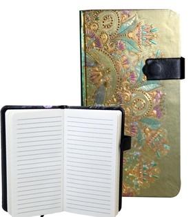 Zápisník s magnetickým klipem 85x160 mm zlatý s barevným ornamentem B