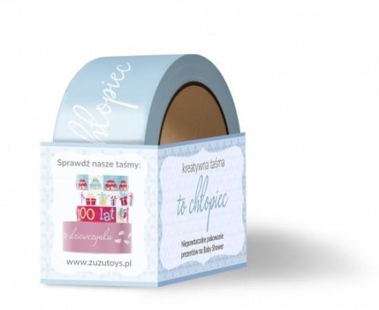 Taśma do pakowania prezentów. To chłopiec