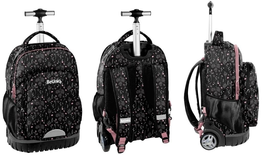 Placak na kółkach, dwie pojemne komory, przednia kieszeń z organizerem, dwie boczne kieszonki z siatki. Profilowane, wyściełane gąbką szelki, wygodny uchwyt do przenoszenia. Wzmocnione dno, chowana osłonka na kółka. číst celé