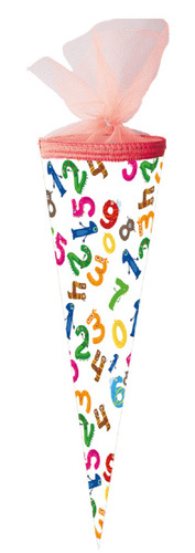 Papírový školní kornouty kulatý o výšce 35 cm s tylovým lemem. číst celé