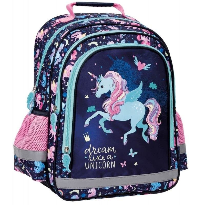 Plecak z jednorożcem to absolutny hit sezonu. Jeśli szukasz plecaka, który zachęci dziecko do podejmowania szkolnych wyzwań wybierz dwukomorowy, dziewczęcy plecak A4 Unicorn do pierwszej klasy. Genialne, miętowo-granatowe kolory i print ultra modnych jednorożców z tęczowymi grzywami! Plecak...