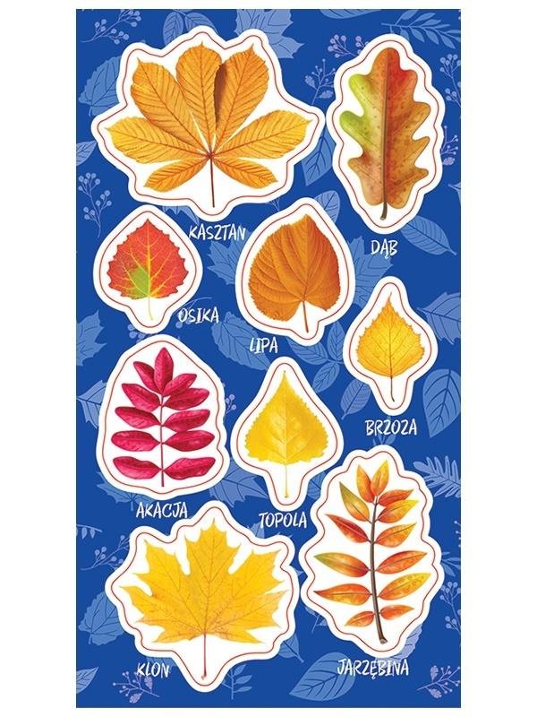 Zestaw naklejek do ozdoby zeszytów, albumów, listów, pocztówek - 9 jesiennych liści z opisami. Polecane do szkół. číst celé
