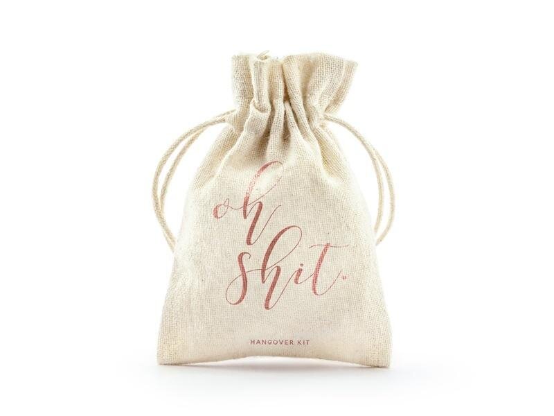 Ściągane woreczki wykonane z bawełny, z napisem Oh shit w kolorze różowego złota, wymiary ok. 10 x 15 cm.(1 op. / 10 szt.) číst celé