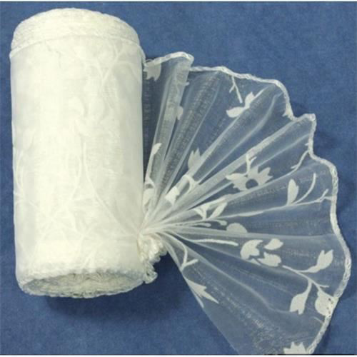 Dekorační olemovaná organza s květinovým vzorem - bílá úzká. Šířka - 10 cm Délka - 9,14m číst celé
