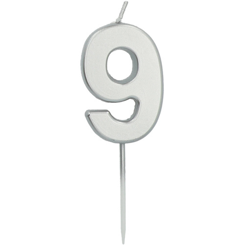Dortová svíčka malá 9 - stříbrná, 5 cm