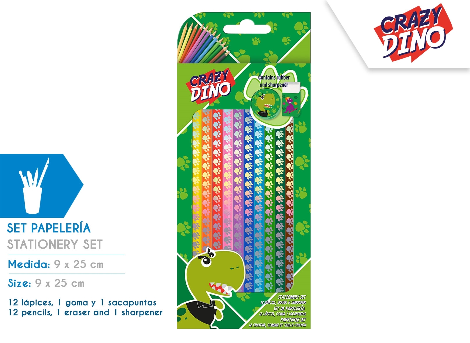 Zestaw kredek ołówkowych 12 kolorów Crazy Dino