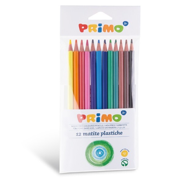 Pastelky plastové, šestihranné PRIMO, tuha Ø 2,9mm, 12ks, plastový obal