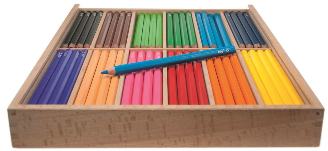 EDU3 Jumbo šestihranné pastelky H144, tuha 5 mm, 144 ks/12 barev ve školním boxu ze dřeva