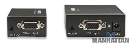 Easily distribute a single VGA audio and video signal to another locationThe MANHATTAN VGA Cat5/5e/6 Extender helps lengthen VGA and audio signals from a single source to remote locations using Cat5/5e/6 cables.Flexible solution for many A/V applicationsIdeal for trade shows, classrooms, home...