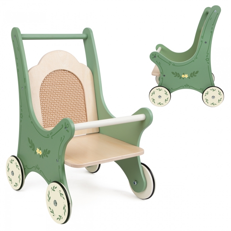 Drewniany wózek dla lalek – styl Vintage z rattanowym oparciem!Ten uroczy wózek dla lalek to połączenie klasycznego stylu z naturalnymi materiałami. Zielona konstrukcja z kwiatowymi zdobieniami i rattanowym oparciem przyciąga uwagę i tworzy niepowtarzalny klimat retro. To idealna zabawka dla...