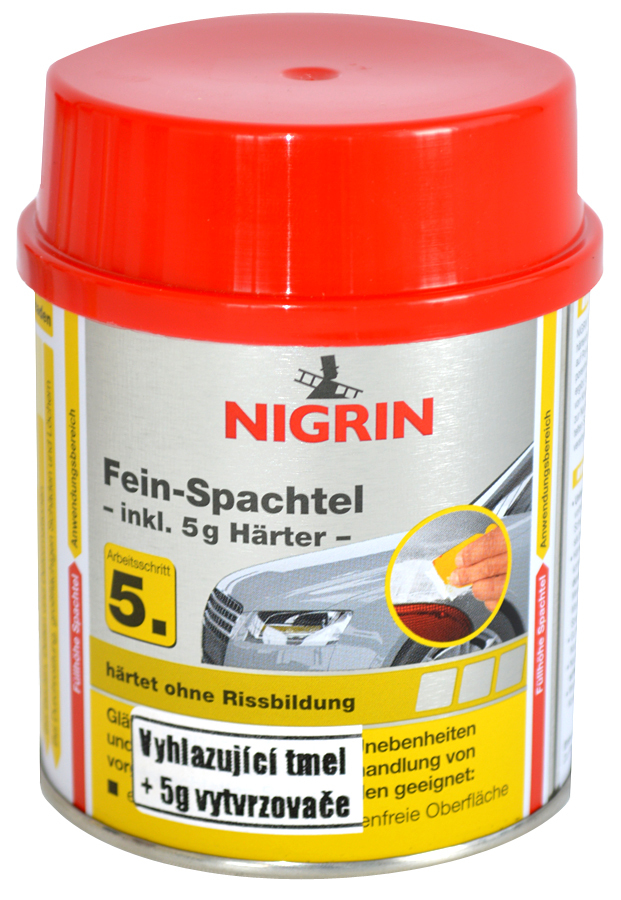 NIGRIN Vyhlazující tmel tvrdne bez popraskání, vyhlazuje škrábance a drobné nerovnosti a je vhodný pro dodatečné ošetření již dříve tmelených míst. Zanechává dokonale hladký povrch bez pórů.Rychle tvrdnoucí dvousložkový tmel na bázi polyesteru, který zaručuje hladký povrch bez pórů a dá se dobře...