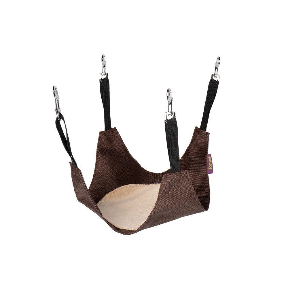 Tato hamaka je vyrobena z kvalitních materiálů, které zaručují snadnou údržbu i dlouhou životnost. Karabiny pro snadné zavěšení do klece jsou součástí balení, takže instalace je rychlá a jednoduchá. Rozměr 38x38 cm je ideální pro fretky i hlodavce, kteří potřebují bezpečné a příjemné místo pro odpočinek. Elegantní hnědo-béžová barevná kombinace ladí s většinou klecí a zároveň působí útulně.