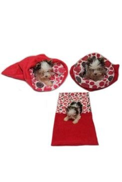 Marysa pelíšek 3v1 pro štěňátka/koťátka, červený/červená kolečka