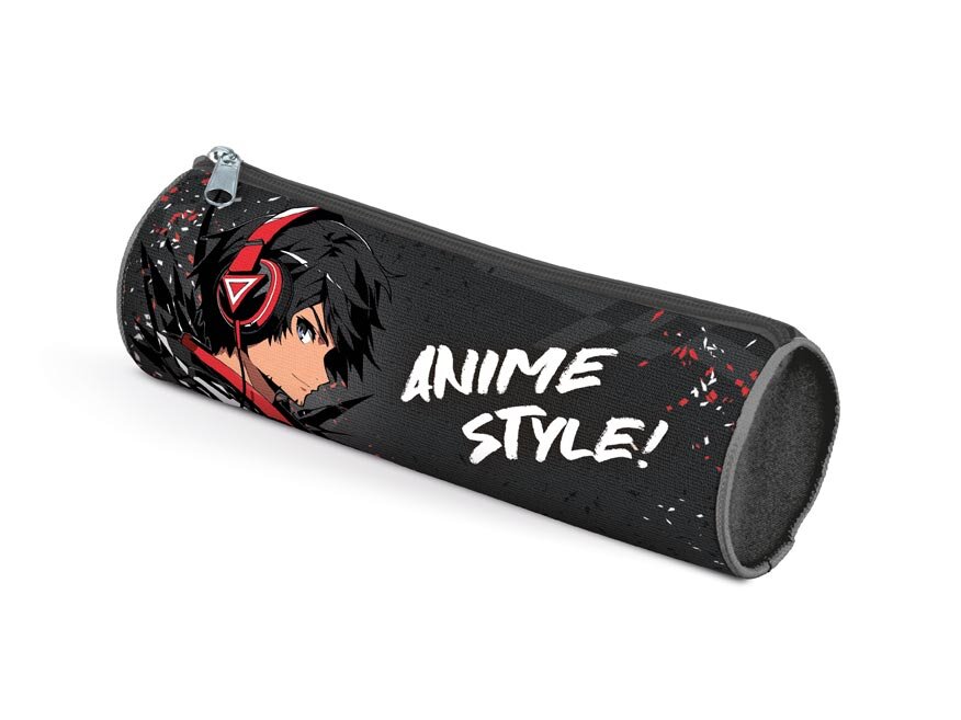 Školní penál/etue válcového tvaru je převážně černé barvy s motivem anime postavy a bílým nápisem "ANIME STYLE!". Penál disponuje jednou hlavní kapsou uzavíratelnou zipem a je ideální pro milovníky anime, kteří chtějí mít své psací potřeby nebo jiné drobnosti uspořádané ve stylovém a osobitém...