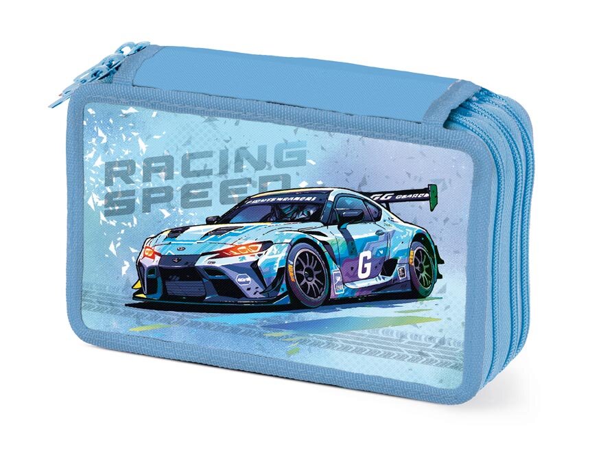 Penál 3P nevybavený Speed v světle modré barvě s motivem závodního auta je ideální volbou pro všechny děti, které chtějí mít své psací potřeby vždy přehledně uspořádané a po ruce.