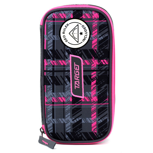Školní penál bez náplně Target Compact Geo, s pravítkem, růžovo-šedo-černý
