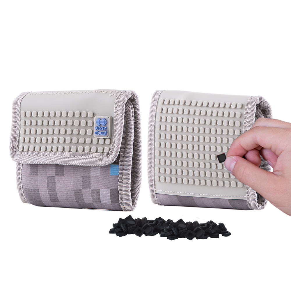 Unikátní vlastností je silikonový panel o velikosti 10 x 10 bodů umístěný na zadní straně peněženky, na který si můžete pomocí 97 barevných PIXIES (pixelů) vytvářet libovolné obrázky. K sadě dostanete přibližně 55 malých pixelů, 10 pixelů s písmeny, 4 multipixely (velikost 2x2 body) s obrázky a mini galerii pro inspiraci. Kreativitu můžete rozvíjet i online v editoru PIXIE CREW nebo si dokoupit další PIXIES v 24 barvách.