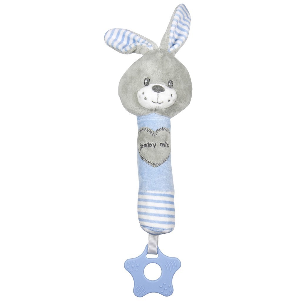 Dětská pískací plyšová hračka s kousátkem Baby Mix králík modrý
